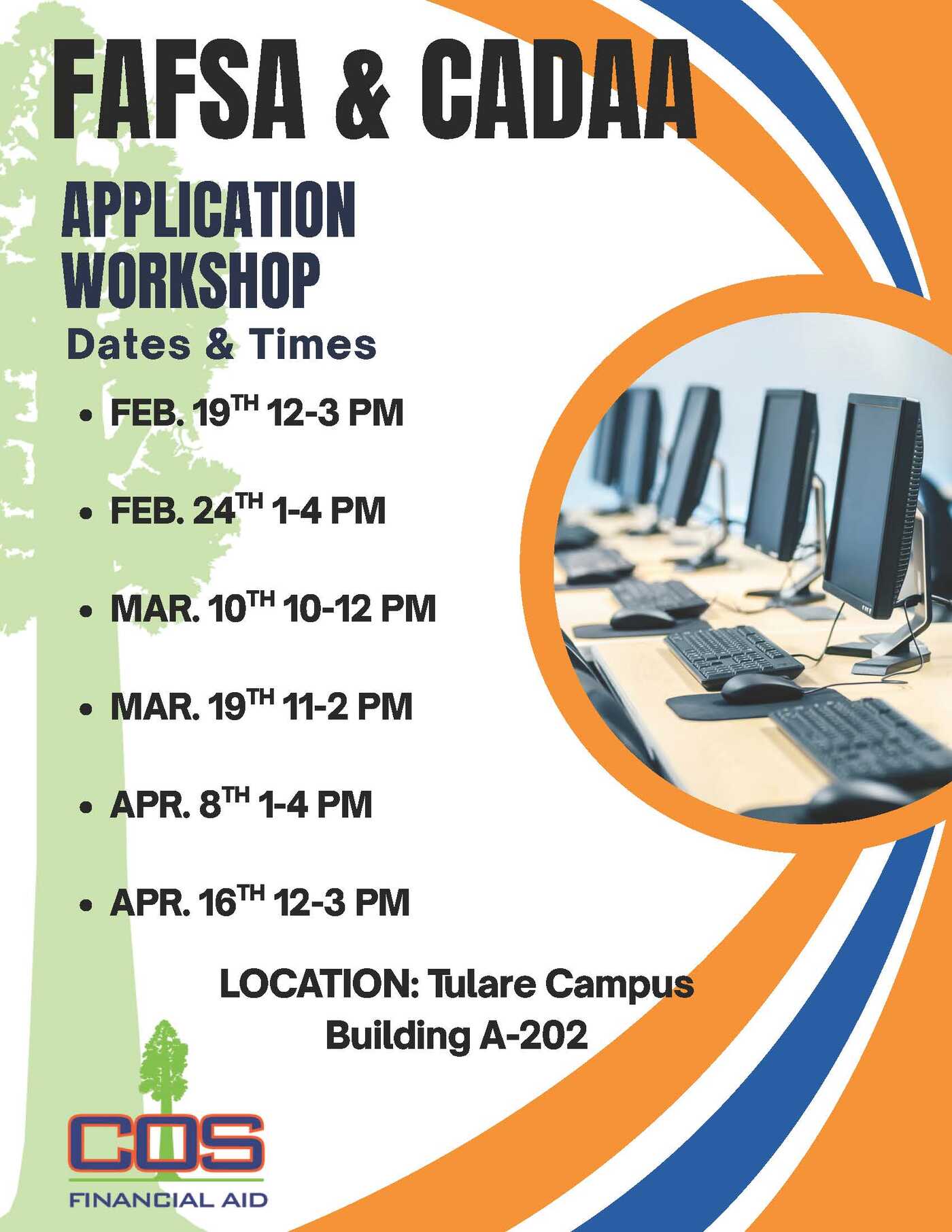 Come visit us at any of our Workshops to get you started on your Financial Aid Journey!