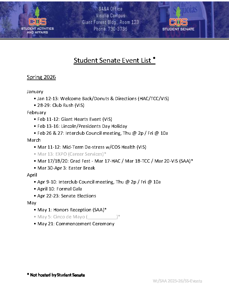 Student Activities and Affairs and Student Senate host many events each semester. Please click each event to get more information.